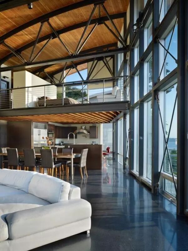 钢结构顾名思义是钢制材料组成的结构,主要由型钢和钢板等制成钢梁、钢柱、钢桁架等构件。相比于钢筋混凝土结构,有轻质高强的特点,由于自重轻,多用于高层建筑。而只要空间里运用到钢结构,立马一股浓浓的工业风,简单又犀利!